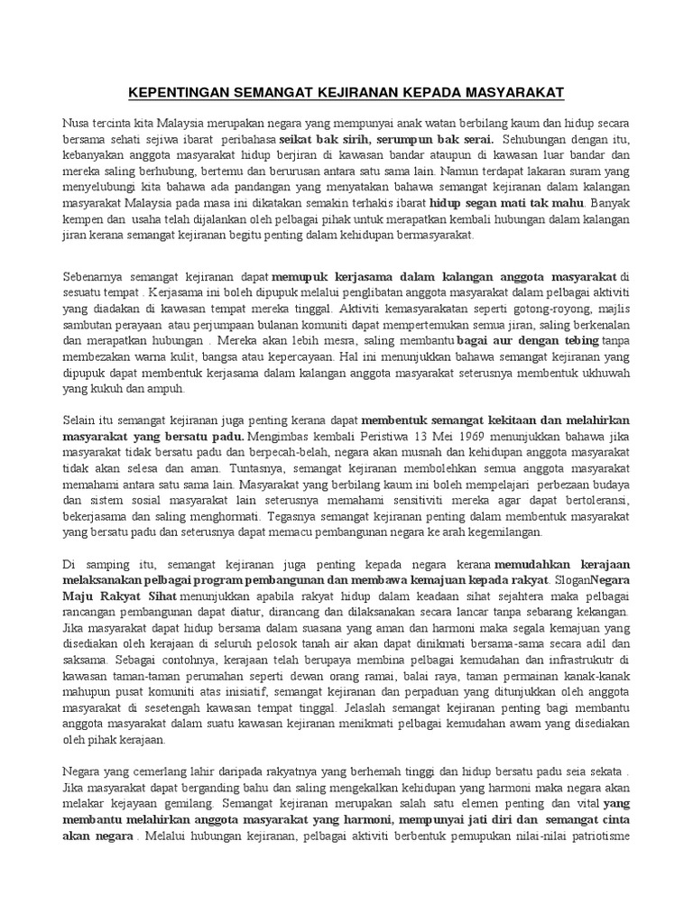 Contoh Karangan Semangat Kejiranan Pdf